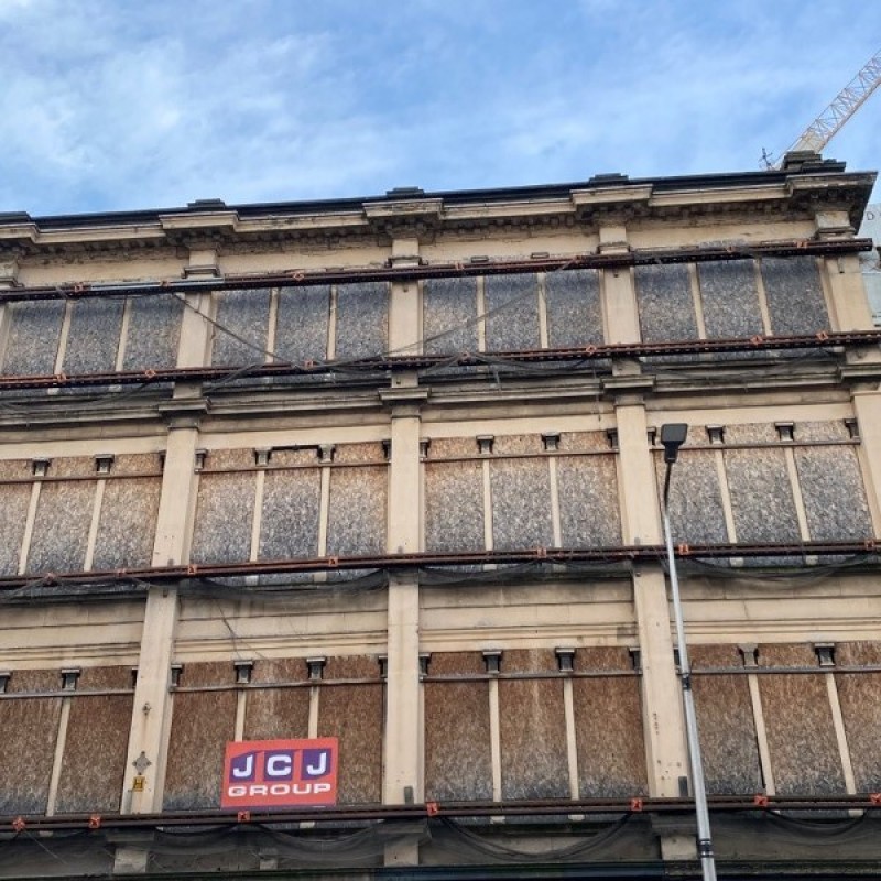 Boarded up retail block