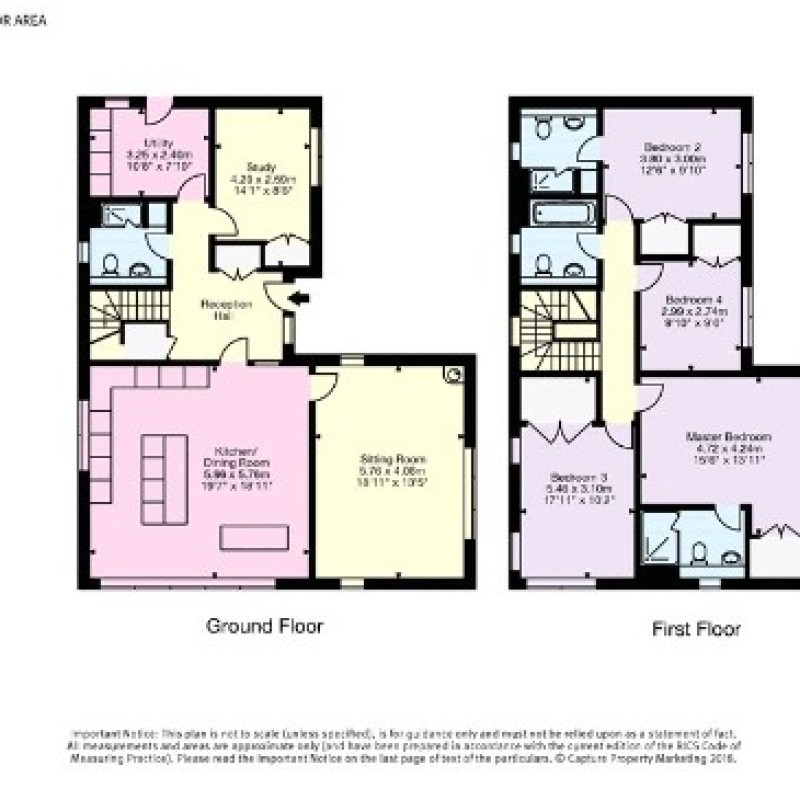 They are well-designed, attractive and spacious with each property having an area of 1,991 sq ft (excluding the garaging). The accommodation is split over two floors, with the ground floor comprising a reception hall with staircase, open plan kitchen/dining/living room, sitting room, study, cloakroom with shower and utility room. The first floor consists of 4 double bedrooms, 2 of which are en-suite, and a family bathroom.