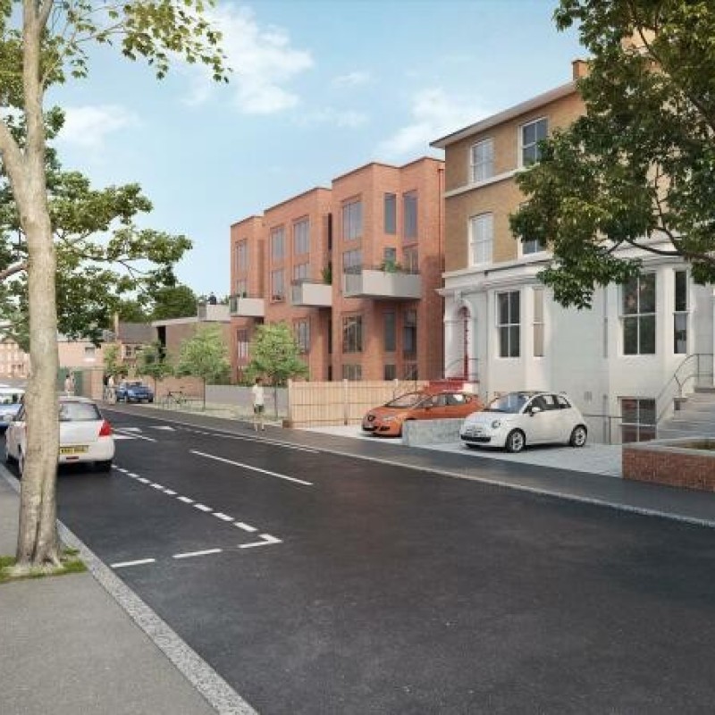 Demolition of existing buildings and construction of a part 4, part 5 storey building to provide 18 split level flats (Use Class C3), together with 3, part three part two storey three bedroom houses (Use Class C3) and provision of shared communal garden, amenity space, associated hard and soft landscaping, cycle parking and bin storage.