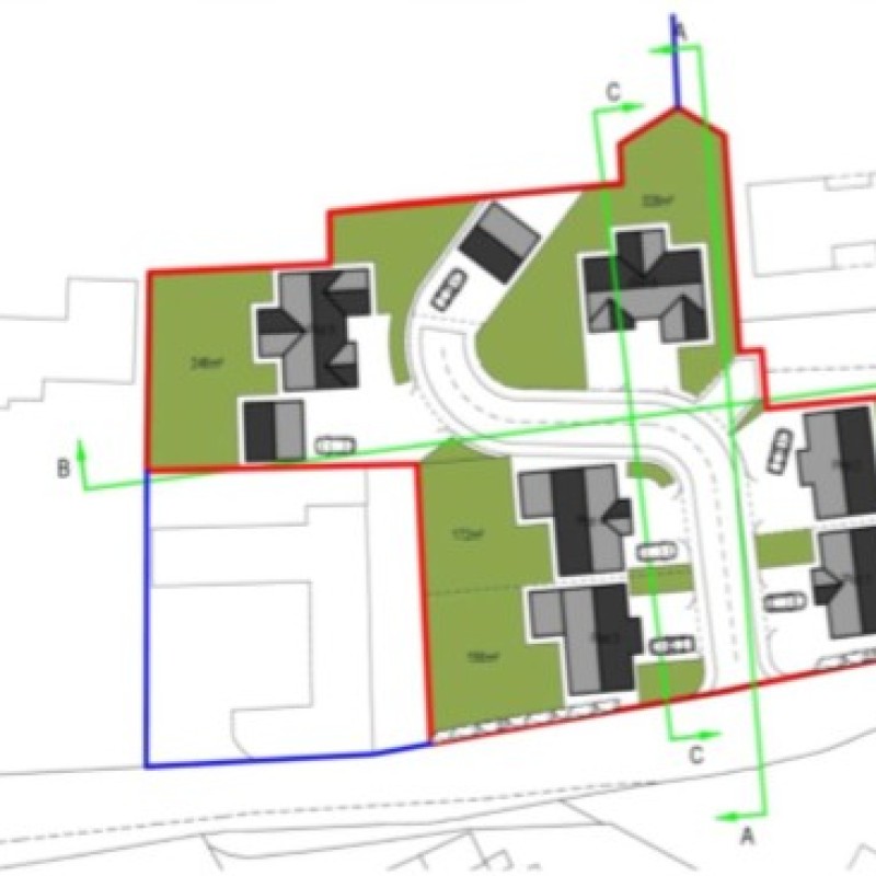 Full planning consent was granted on 25.7.2018 for the demolition of existing storage/machinery sheds and the erection of 6 dormer bungalows and garages, access track and landscaping.