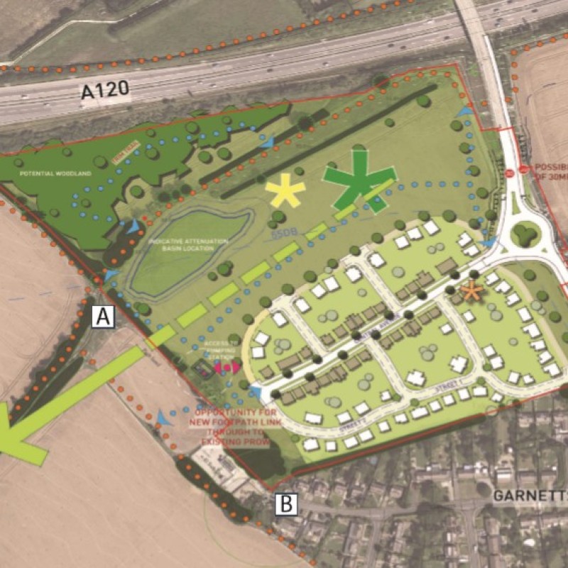 Outline planning permission was allowed at appeal on 31st January 2020 for the development of up to 119 dwellings (including affordable housing and self-build plots), including vehicular and pedestrian access, infrastructure, open space, footpath links, children’s play area, landscaping, green infrastructure, surface water management station and associated works and either a community building (use class D1) or a dwelling with all matters to be reserved except access.