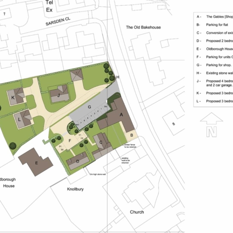 Planning Permission was granted by West Oxfordshire District Council under two separate planning applications. Application No. 16/04004/FUL was approved in February 2017 for the conversion of the former butchery to one dwelling and the construction of a further dwelling with associated works.