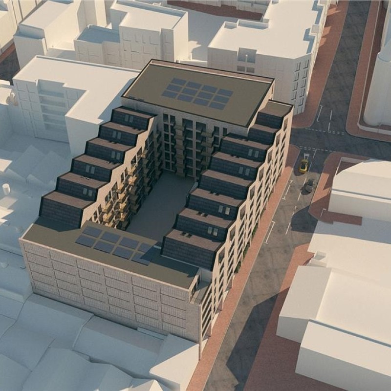 Demolition of the existing buildings and construction of a part 6/7 storey building accommodating 131 apartments with associated basement parking.
